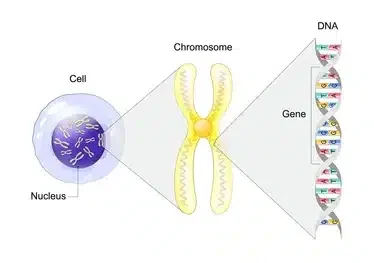Chromosomes are thread-like structures located inside the nucleus of animal and plant cells. Each chromosome is made of protein and a single molecule of deoxyribonucleic acid (DNA).